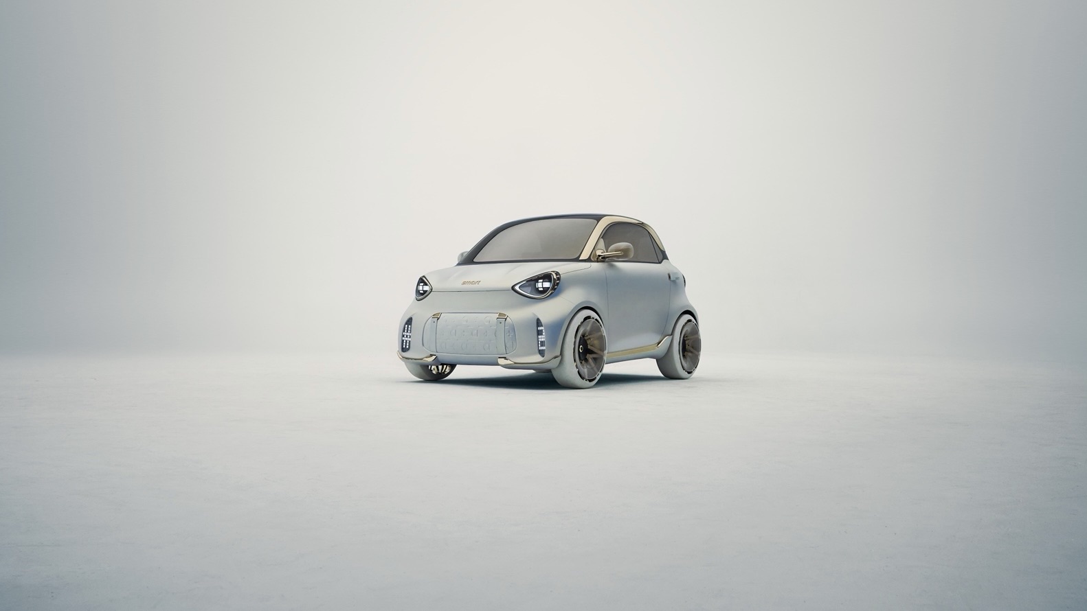 Optisch bleibt der neue Hoffnungsträger seinen Wurzeln treu, interpretiert diese aber auf eine moderne Weise. Gestaltet wurde das Fahrzeug vom Mercedes-Benz Global Design Team nach der Philosophie Love, Pure, Unexpected. Mit einer Gesamtlänge von nur 2.792 Millimetern bleibt der Wagen extrem kompakt. Besonders auffällig ist die sogenannte Wheels-at-the-corners-Architektur, bei der die Räder so weit wie möglich in den Ecken platziert sind, um den Innenraum trotz der geringen Außenmaße zu maximieren.