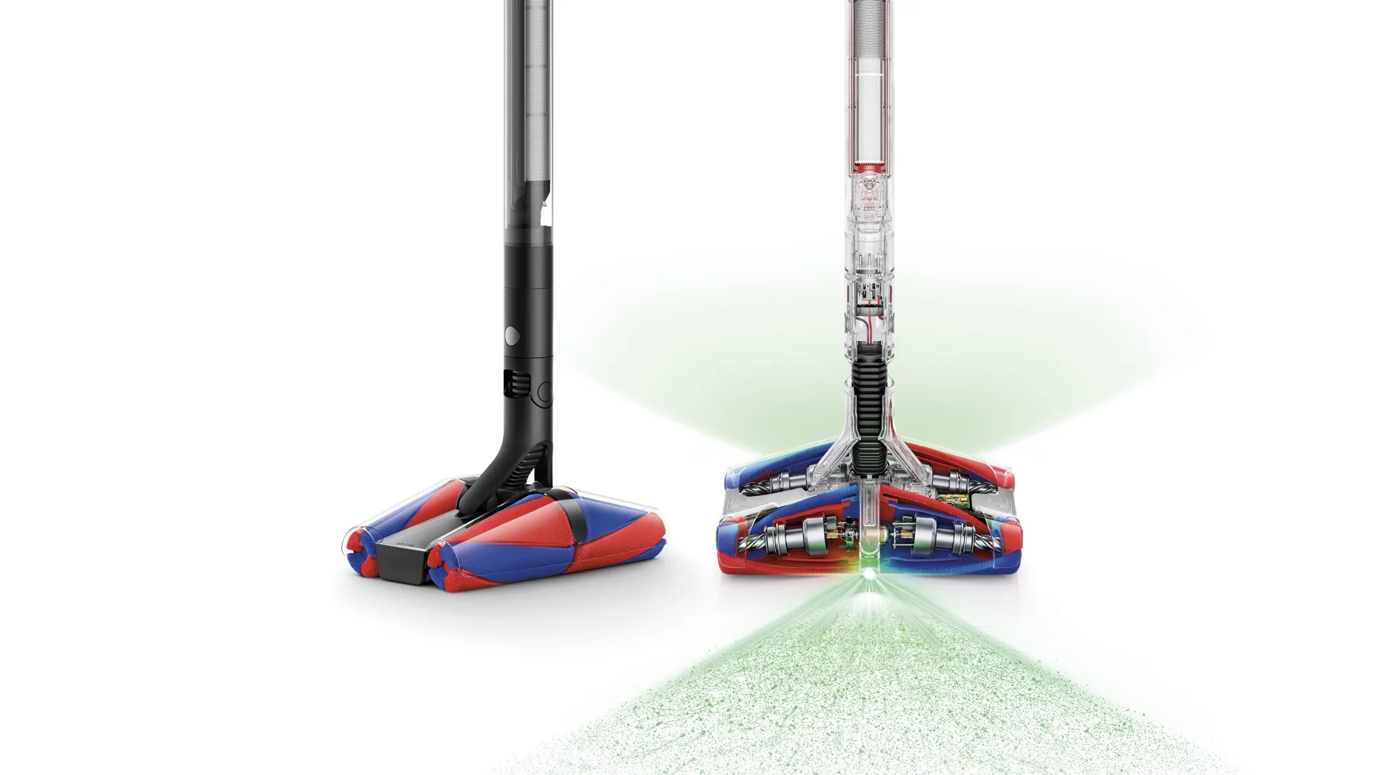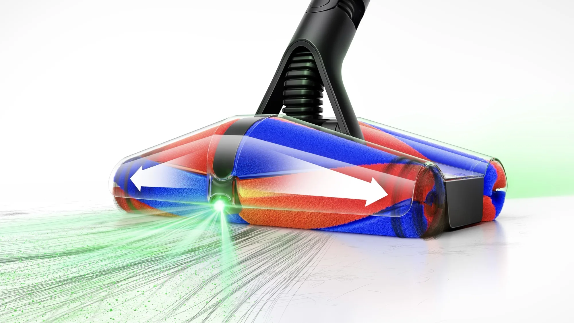 Zusätzlich sorgt eine laserähnliche Beleuchtung vorne und hinten dafür, dass selbst feinster Staub sichtbar wird. Die Kegelbürsten reichen dabei bis an die Gehäusekanten, sodass der PencilVac auch entlang von Fußleisten und in engen Ecken gründlich arbeitet. Damit ist Dyson nicht nur ein funktionaler, sondern auch ein ergonomischer Sprung gelungen – das Gerät lässt sich seitwärts, rückwärts und entlang von Kanten bewegen wie kein anderes Modell zuvor.