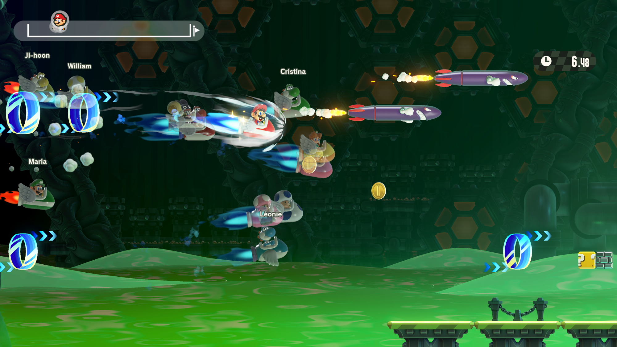 Super Mario Bros. WonderWeniger freundlich fallen die weiteren Neuankömmlinge aus. Die Koopalinge sorgen für Unruhe, nachdem sie einen Schatz aus dem Bellabel-Park gestohlen haben. Ihre Flucht führt sie durch verschiedene Welten des Königreichs, in denen sie in eigenen Levels gestellt werden müssen. Diese Begegnungen fügen sich organisch in das bestehende Spiel ein und sorgen für neue Herausforderungen auch für erfahrene Spieler:innen.