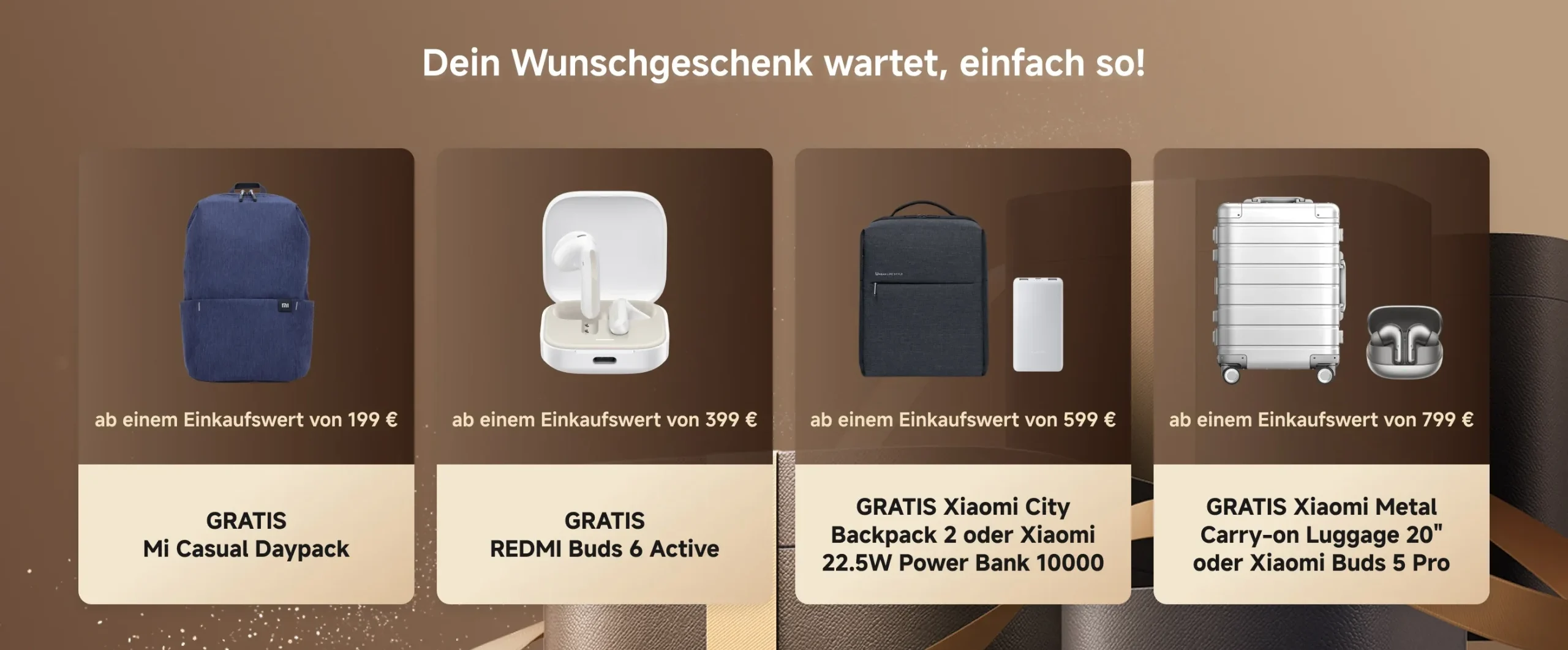 (Zur Wahl stehen: Xiaomi Sound Pocket 5W, Ultra Slim Power Bank 5000mAh oder REDMI Buds 6 Play)