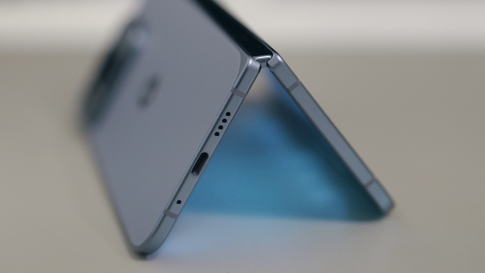 Eine bauliche Eigenheit ist die Gestaltung der Displayränder. Das Außendisplay wirkt durch die schmaleren Ränder moderner, auch wenn noch Luft nach oben besteht. Innen ist der Rand angenehm dezent und lenkt nicht von den Inhalten ab. Ein spannendes Detail ist die dezente Positionierung der Innenkamera in der Ecke. Das nimmt ihr visuell Gewicht und verhindert den typischen „Loch im Bild“-Effekt.