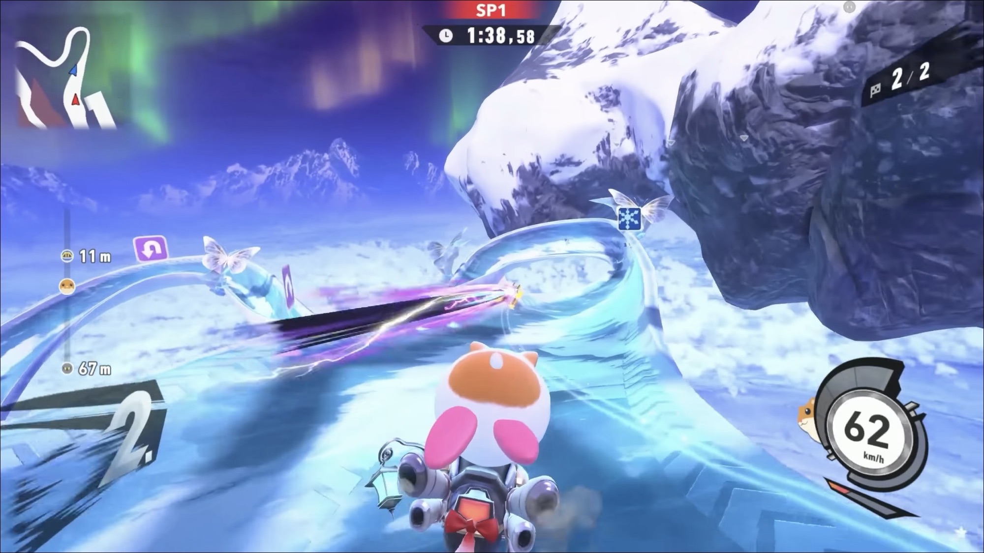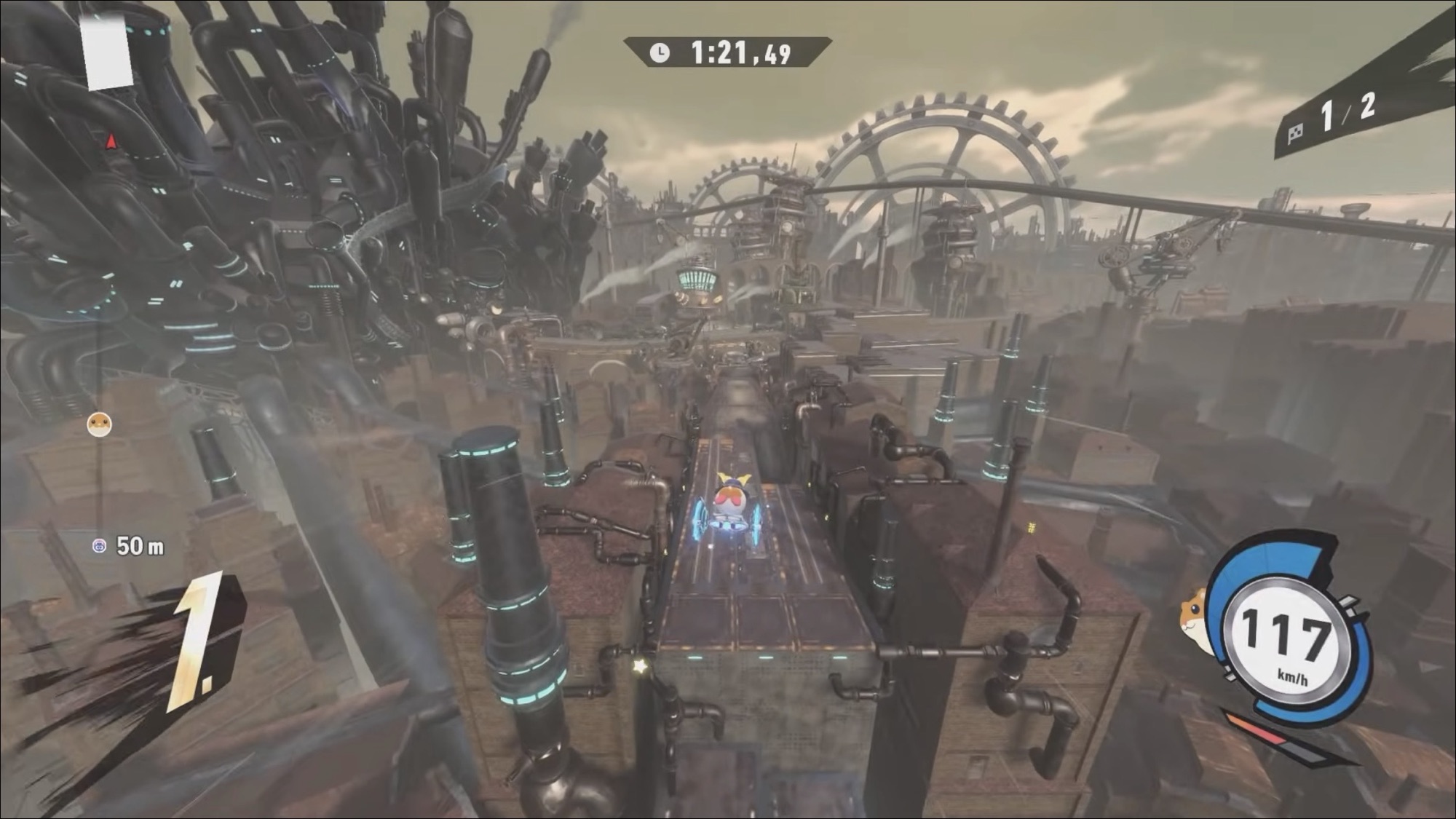 Die Streckenwelten decken ein großes Spektrum ab. Traumlandschaften treffen auf Steampunk Gebiete und digitale Arenen. Jeder Kurs besitzt klar erkennbare visuelle Themen, sodass man sofort weiß, wo man sich befindet. Dazu kommen zahlreiche kleine Details wie Partikeleffekte bei Boosts, funkelnde Sterne in Kurven oder dramatische Lichtspiele in Untergrundpassagen. All das sorgt dafür, dass Rennen wie kleine Erlebnisfahrten wirken.