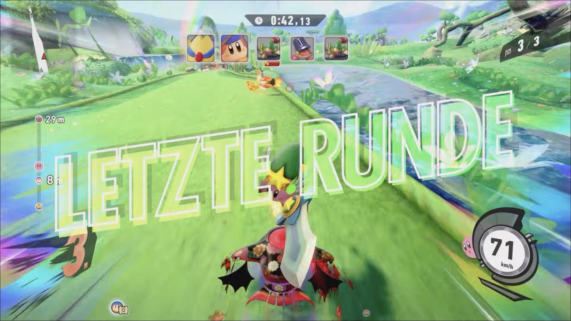 Das Ergebnis ist ein Rennen, das selten berechenbar ist, aber dafür nahezu immer spannend. Unsaubere Fahrten werden belohnt, wenn sie taktisch klug sind. Gezielte Angriffe bringen mehr als bloßes Wegschubsen. Und wenn man das Zusammenspiel aus Fahren, Kämpfen und Manipulieren der Strecke verstanden hat, dann entfaltet Kirby Air Riders seine ganze Faszination. Es ist ein chaotisches, aber liebevoll gestaltetes Herzstück im Kampf um die Ziellinie.