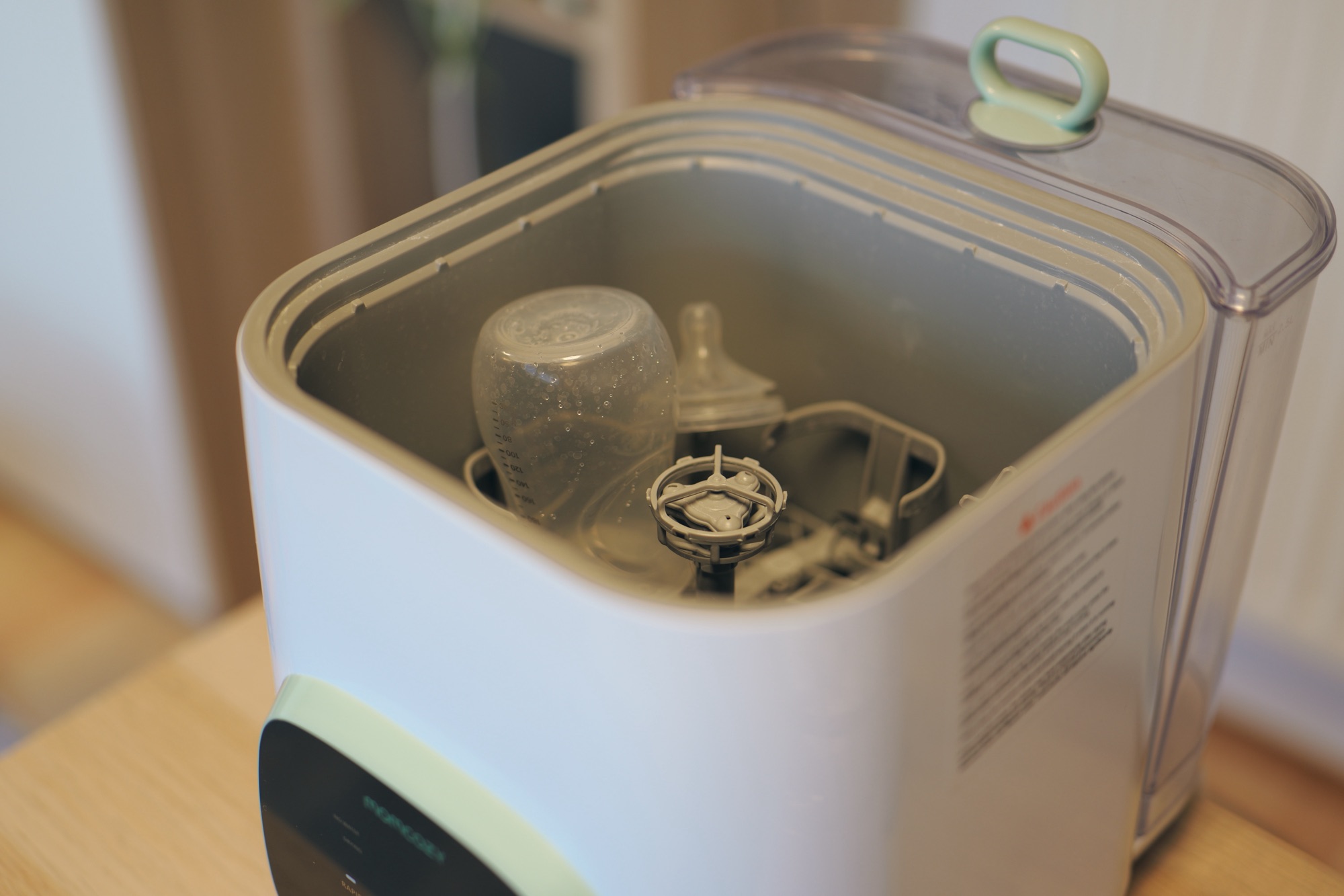 Auch tagsüber fügt sich der KleanPal Pro gut in die Routine ein. Nach mehreren Mahlzeiten sammeln sich Flaschen, Sauger und Zubehör, die dann gesammelt gereinigt werden. Die Programme laufen zuverlässig durch, unabhängig davon, ob nur zwei Flaschen oder die volle Kapazität genutzt wird. Das Ergebnis bleibt konstant. Genau diese Vorhersehbarkeitsorgt im Alltag für Entlastung.