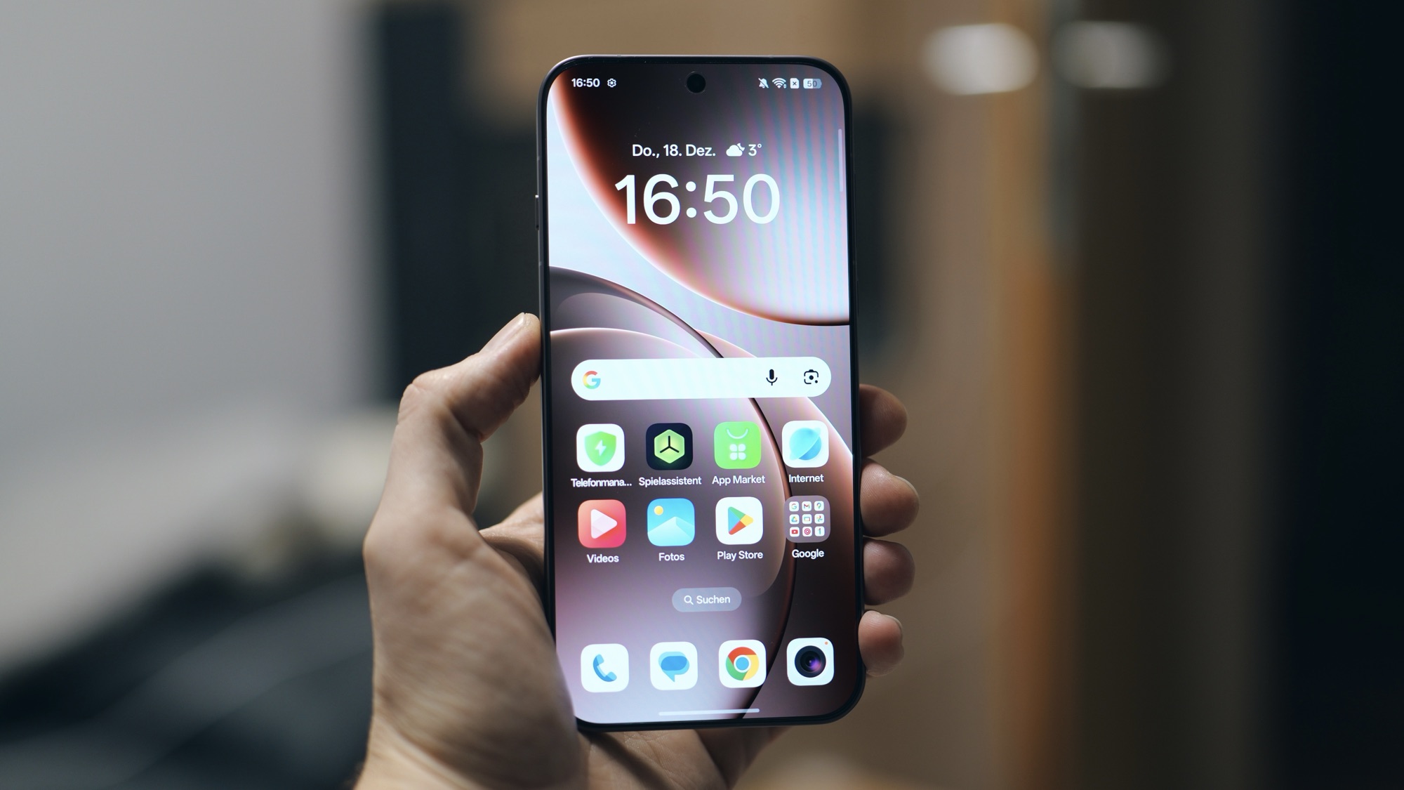 Oppo setzt hier auf ein LTPO-Panel mit adaptiver 120-Hz-Bildwiederholrate, was nicht nur für butterweiche Animationen sorgt, sondern auch effizient mit dem Akku umgeht. Im Alltag passt sich die Bildrate unauffällig an Inhalte an, egal ob beim Scrollen durch lange Texte, beim Streamen von Videos oder beim Spielen. Die Darstellung bleibt dabei jederzeit stabil und frei von Schlieren oder unruhigen Übergängen.