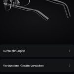 Ein klarer Pluspunkt ist die freie Belegung der Gesten. Funktionen wie Play und Pause, Titelsprung, Anrufannahme, Sprachassistent oder Audioaufnahme lassen sich flexibel auf linken oder rechten Bügel legen. Dadurch kann man die Brille gut an die eigenen Gewohnheiten anpassen. Weniger überzeugend ist die Lautstärkeregelung, die sehr fein abgestuft arbeitet. Für spürbare Änderungen sind mehrere Wischbewegungen nötig, was im Alltag oft langsamer ist als ein Griff zum Smartphone.