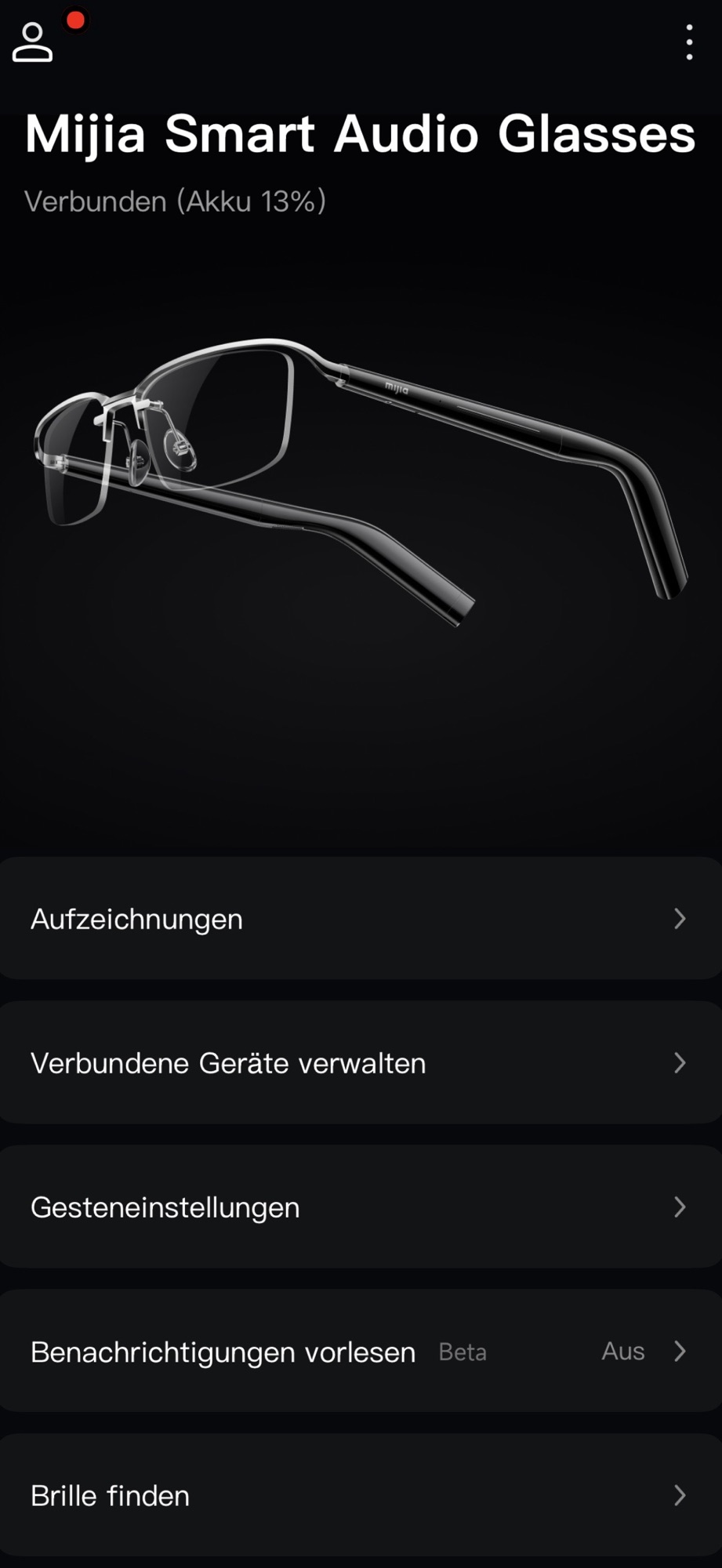 Die Mijia Smart Audio Glasses bieten die Möglichkeit, Audioaufnahmen direkt über die Brille zu starten, ohne das Smartphone in die Hand nehmen zu müssen. Über eine frei belegbare Gedrückthalten Geste am Bügel lassen sich Gespräche, Meetings oder spontane Sprachnotizen aufzeichnen. Gerade in Situationen, in denen man schnell etwas festhalten möchte, kann das überraschend praktisch sein.