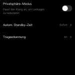Der Haken liegt im Klang. Mit aktiviertem Privatsphäremodus klingt der Sound hörbar gedämpfter und weniger offen. Details gehen verloren, Musik wirkt flacher und etwas eingeengt. Für Telefonate oder kurze Inhalte ist das durchaus akzeptabel, für längere Musik Sessions hingegen eher nicht. Der Privatsphäremodus ist damit eine sinnvolle Ergänzung für bestimmte Situationen, ersetzt aber keine klassische Abschottung wie bei Kopfhörern.
